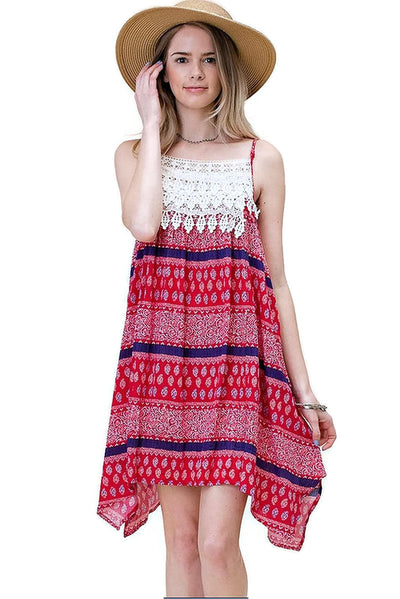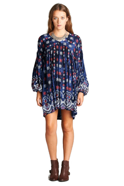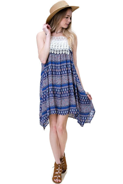 Baby Doll Bohemian Peasant Mini Dress, Blue