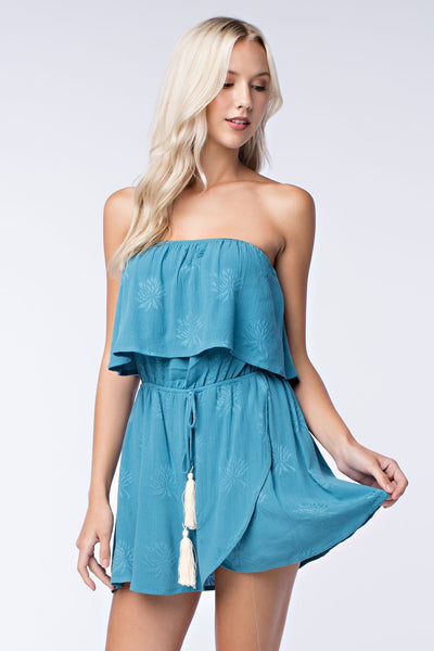 Strapless Two-Tier Wrap Dress, Seafoam