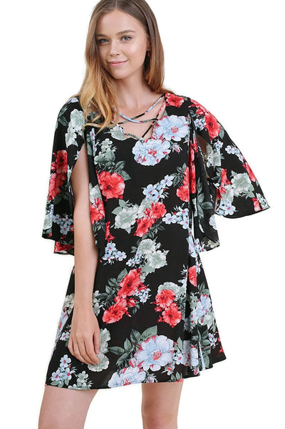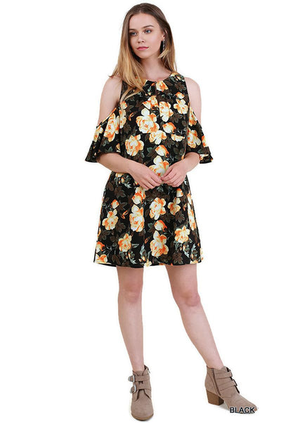 Floral Cold Shoulder Dress, Black