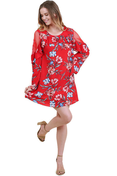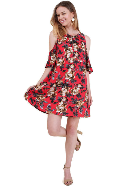 Floral Cold Shoulder Dress, Red