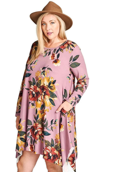 Floral Peasant Dress, Mauve