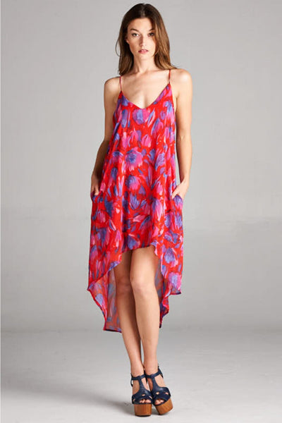 Floral High Low Dress, Red