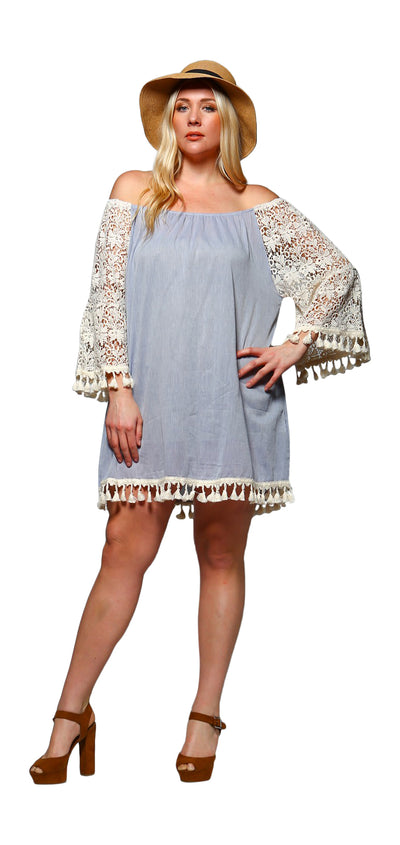 Crochet Sleeve Fringe Dress, Blue