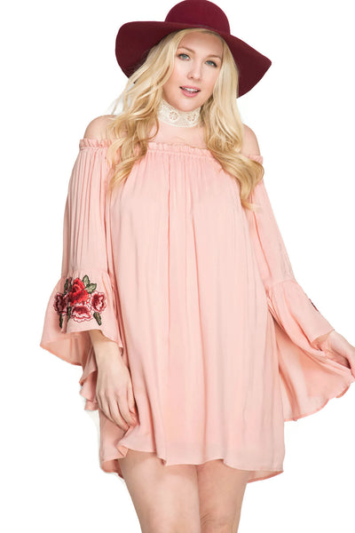 Floral Embroidered Off The Shoulder Mini Dress, Blush