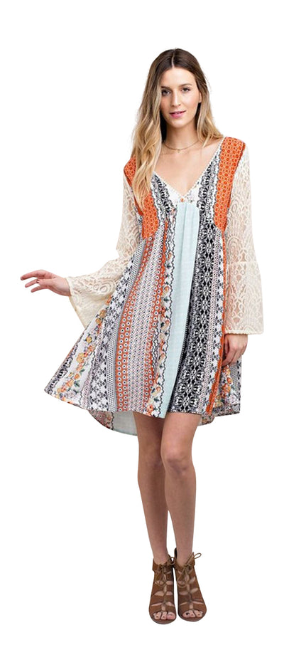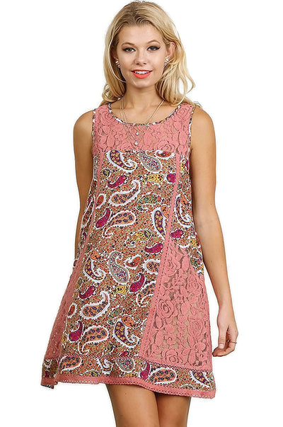 Lace & Fringe Embroidered Sleeveless Dress, Coral