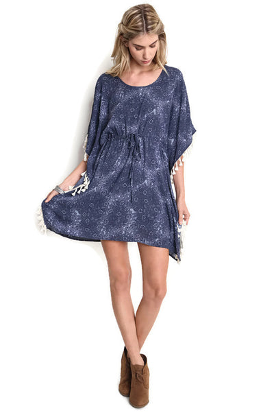 Open Shoulder Ruffle Sleeve Dress, Navy