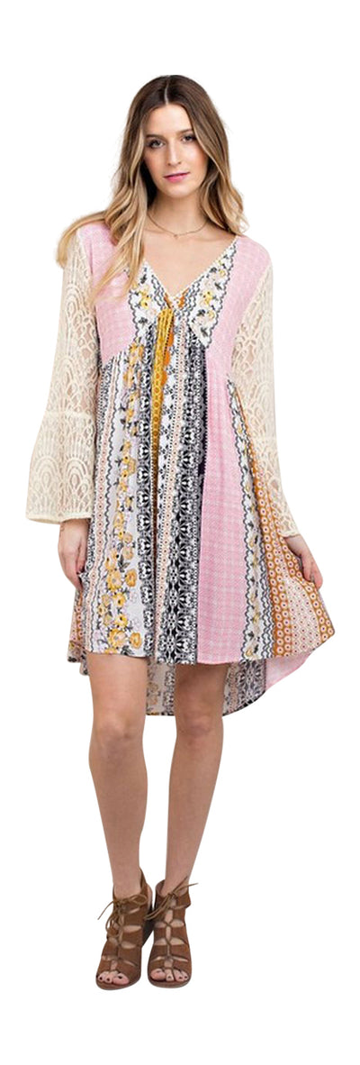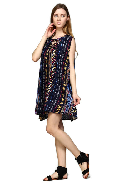 Tie Dye Sleeveless Keyhole Dress, Grey