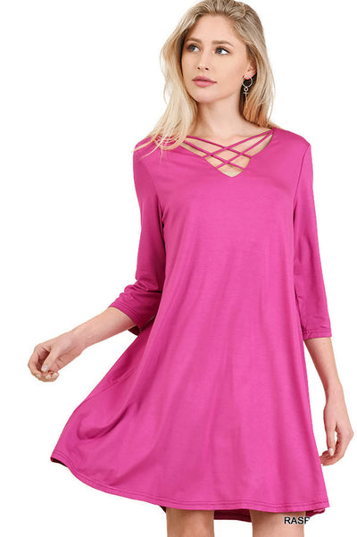Open Shoulder Ruffle Sleeve Dress, Hot Pink