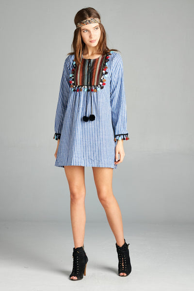 Pin Striped Tassel Yoke Tunic