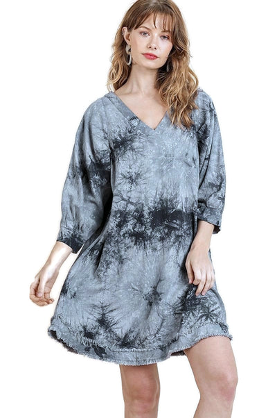 Tie Dye Frayed Hem Dress, Grey