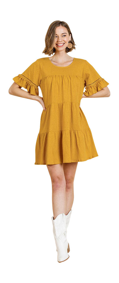 Ruffle Sleeve Tier Mini Dress, Goldenrod