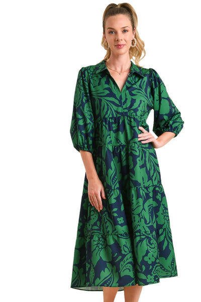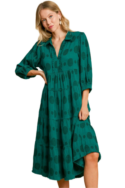 Tiered Cuffed Sleeve Dress, Green