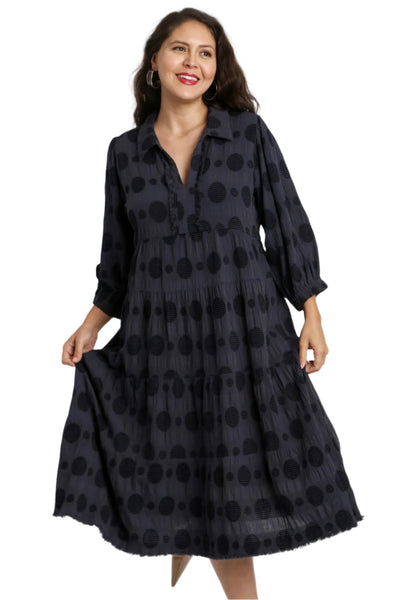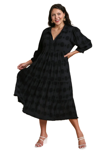 Swiss Dot Jacquard Midi Dress, Black