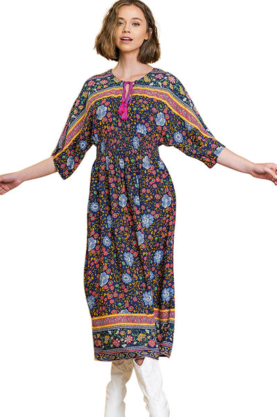 Baby Doll Bohemian Peasant Mini Dress, Black