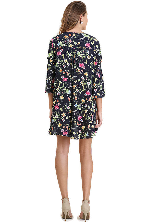 It features a Keyhole neckline with bell sleeves. Beautiful floral  print.  A-line shape
