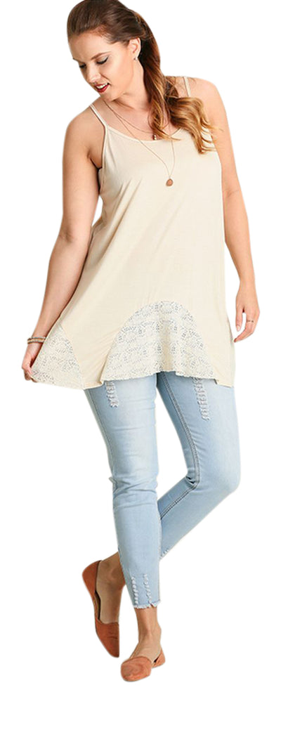 Lace Flared Tank Top, Cream