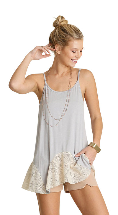 Lace Flared Tank Top, Silver