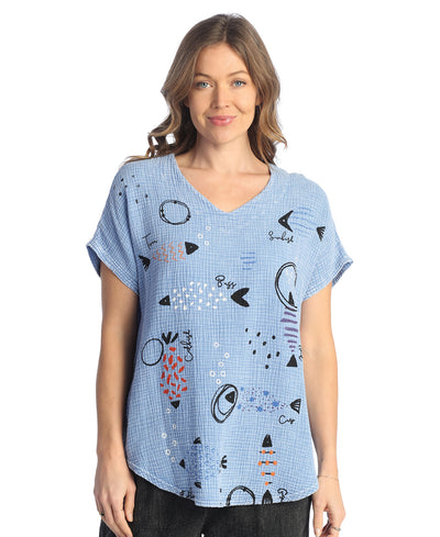 Dot N Line Mineral Washed Cotton Gauze Short Sleeve Top