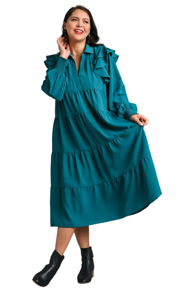 Ruffle Long Sleeve Tiered Maxi Dress, Teal