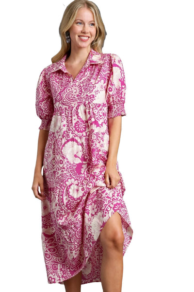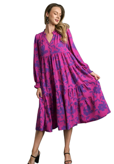 Floral Print Midi Dress, Magenta