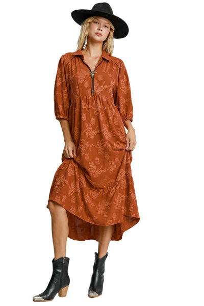 Floral Burnout Textured Midi Dress, Rust