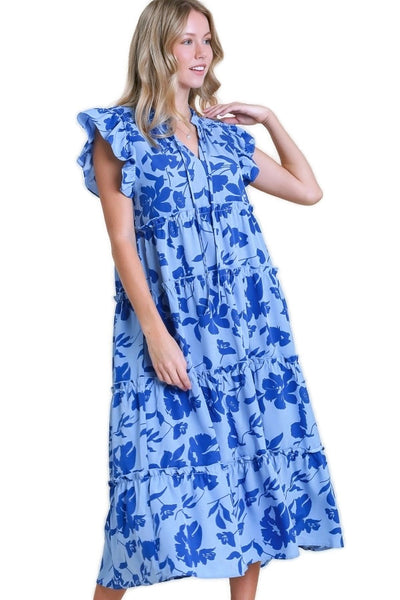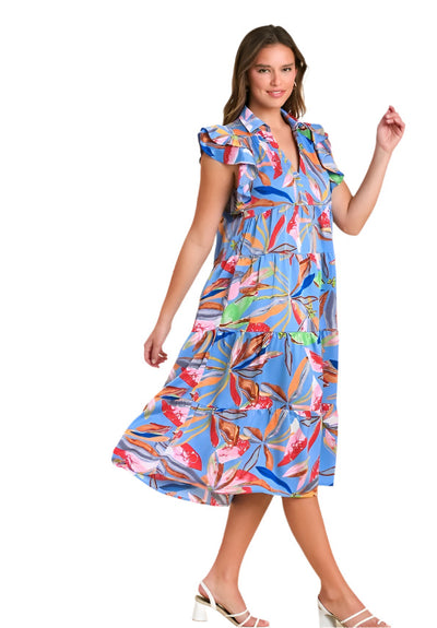 Floral & Leaf Ruffle Midi Dress