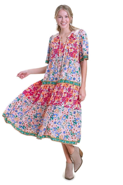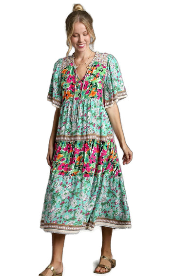 Mixed Floral Print Tiered Dress
