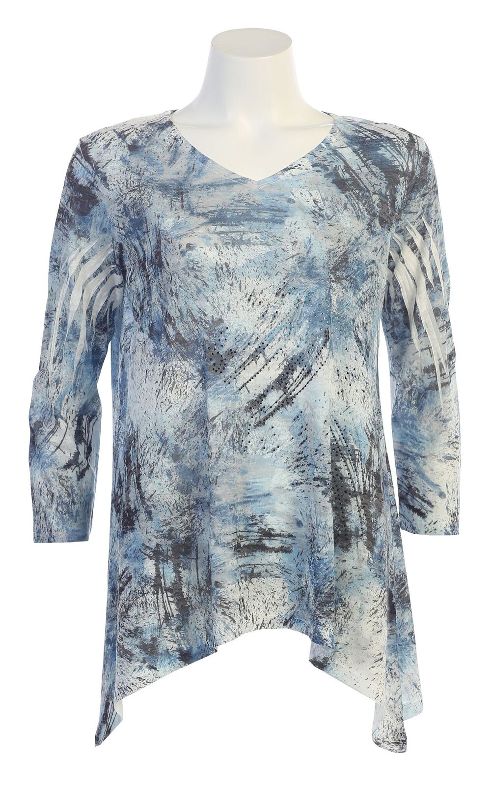 - 7/8 sleeves : V-neckline : asymmetrical hemline : A-line