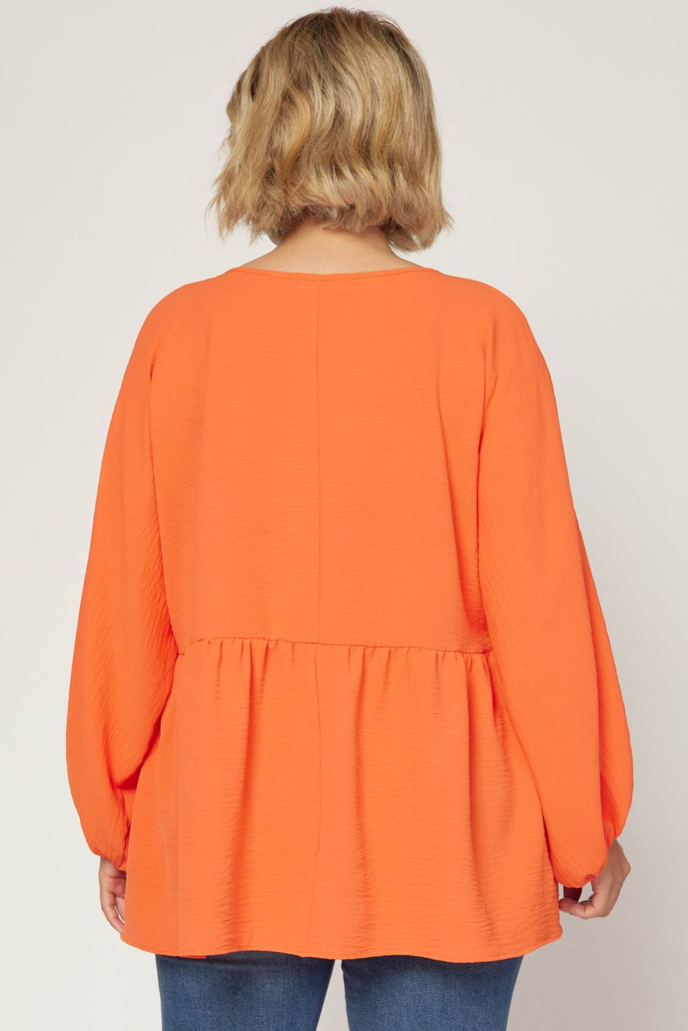 This is the perfect everyday top! We are obsessed with it. It's comfortable for all day wear, has a figure flattering baby doll fit and long sleeves with elasticized cuff details for a trendy look! We love this top with skinnies & booties for an easy outfit! It features a V-neckline, long sleeves with elastic at wrist and an a-line silhouette.