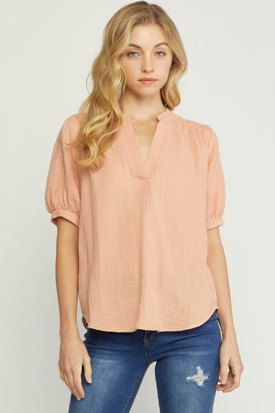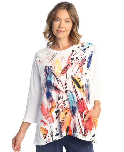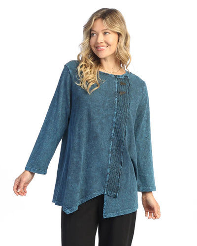 Wavy Contrast Faux Wrap Mineral Washed Cotton Tunic, Sapphire