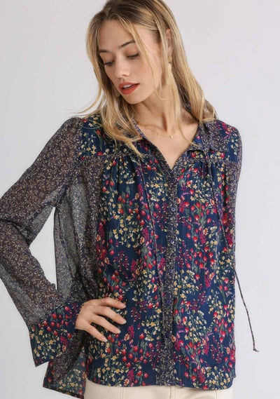 Floral Babydoll Ruffle Sleeve Top, Blue