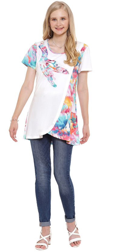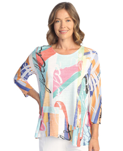 Geonelle Slit V-Neck Chiffon Contrast Top