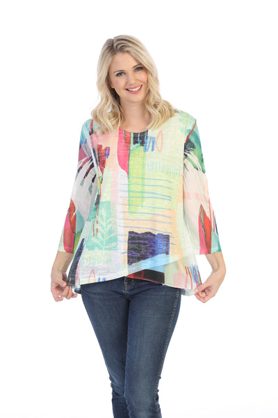 Lily Trio Slit V-Neck Chiffon Contrast Top