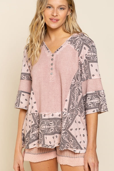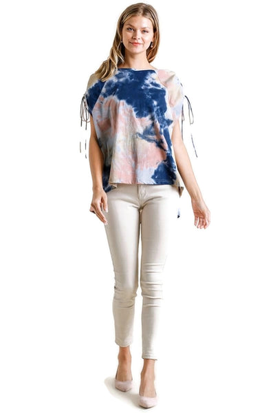 Tie Dye Cinched Sleeve Top, Navy /Peach