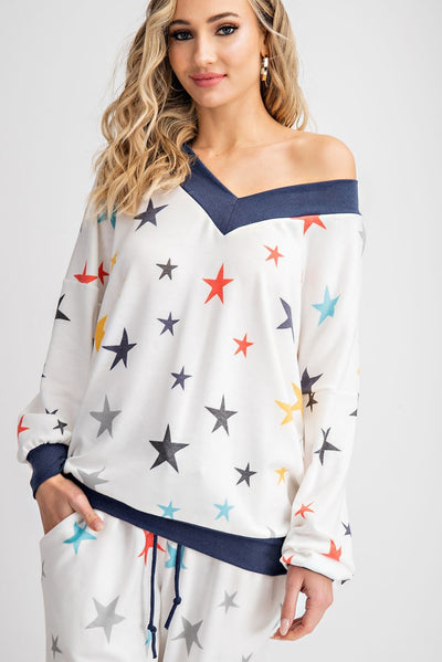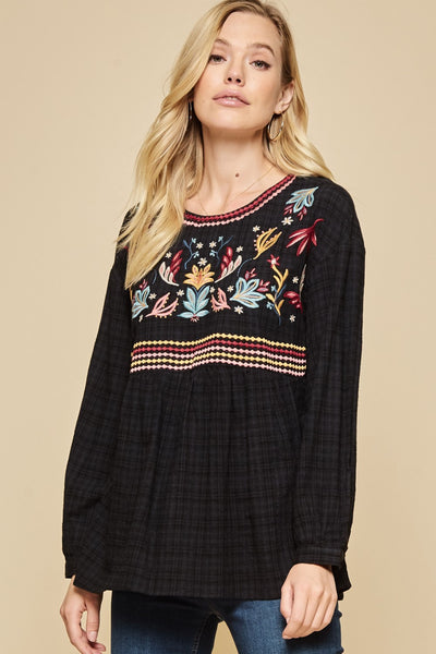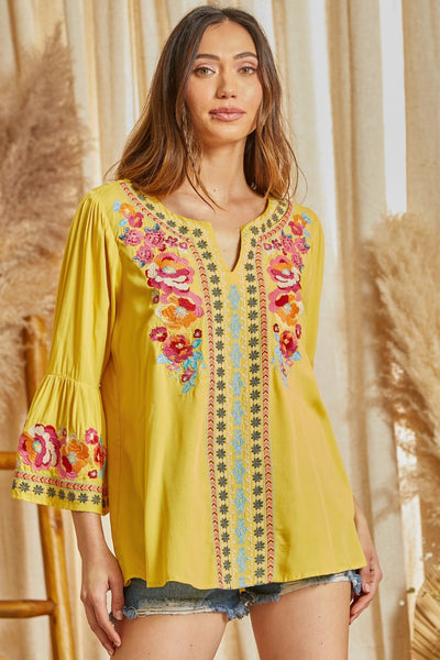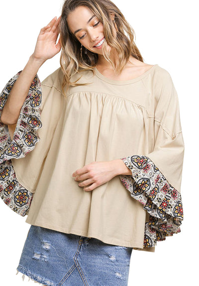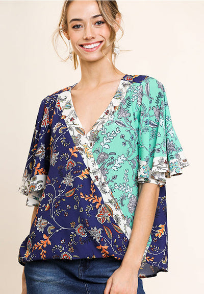 Floral Bell Sleeve Crossbody Top, Navy/Mint