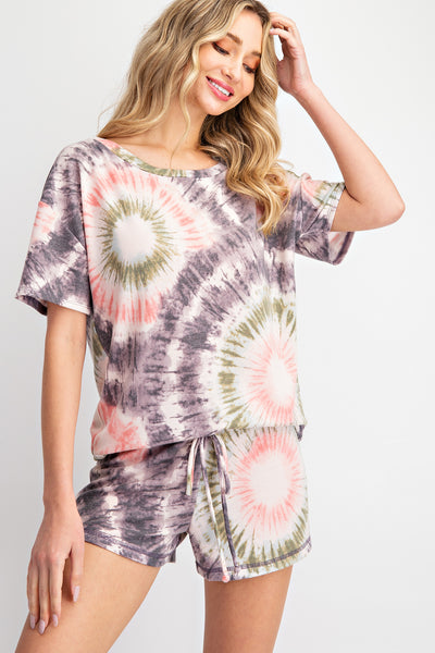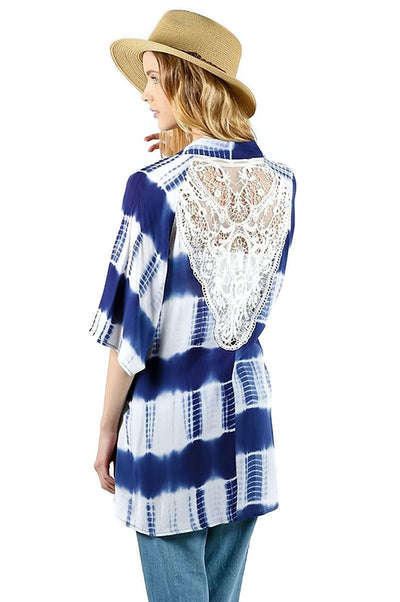 Tie Dye Kimono with Lace Crochet Back, Blue