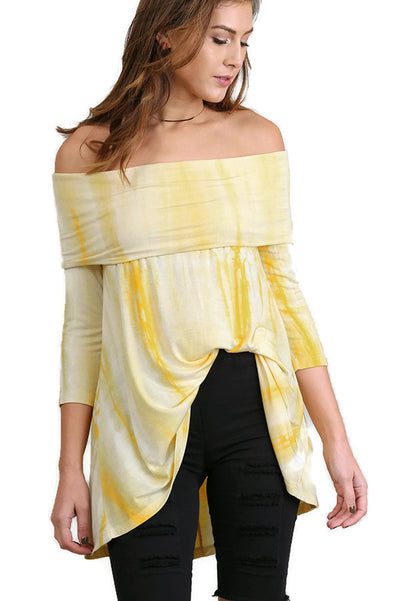Fold Over Off The Shoulder Tie Dye Tunic, Lemon