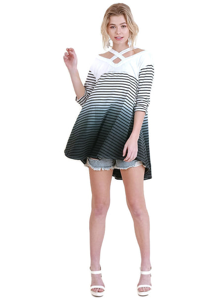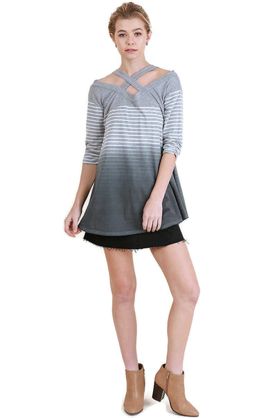 Washed Ombre Striped Tunic, Grey