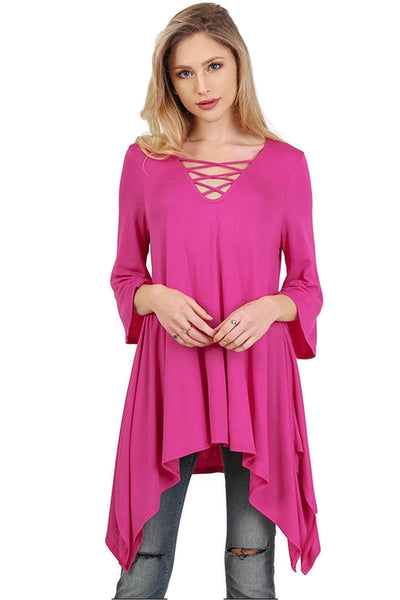 Crossed Bell Sleeve Asymmetrical Tunic, Raspberry