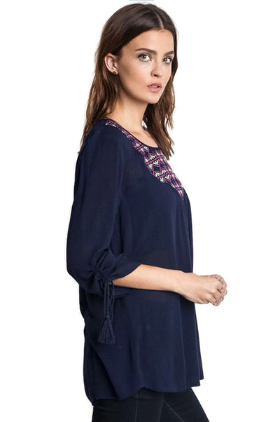 Embroidered Baby Doll Top, Navy