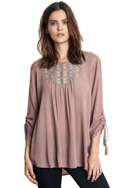 Embroidered Baby Doll Top, Taupe
