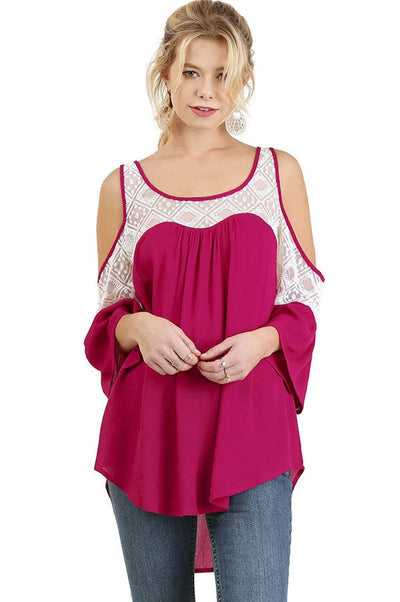 Cold Shoulder Top with Lace Details, Berry