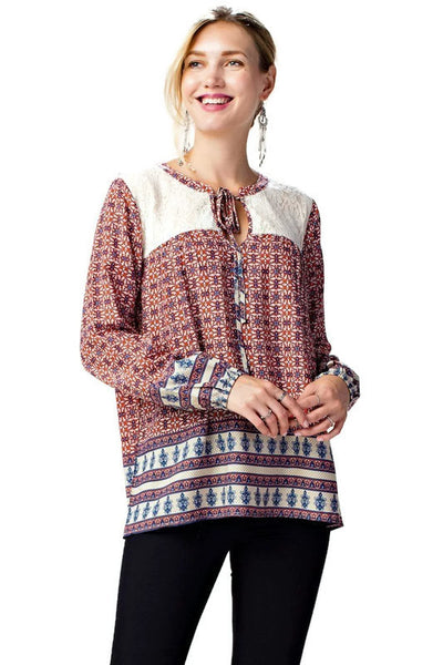 Border Print Lace Top, Red