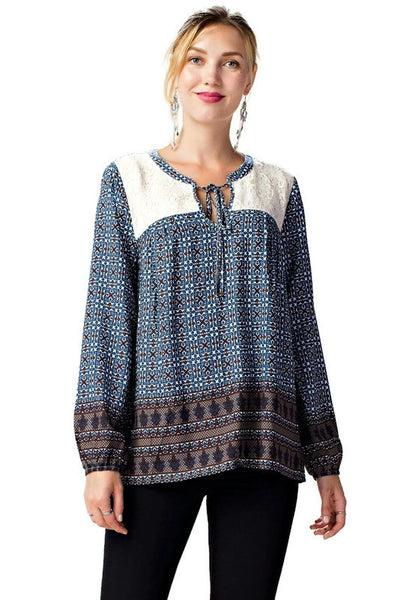 Border Print Lace Top, Navy