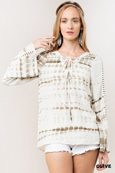 Tie Dye Lace Up Top, Olive