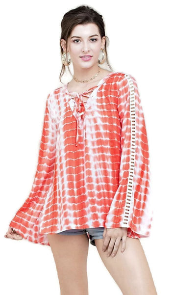 Tie Dye Lace Up Top, Coral