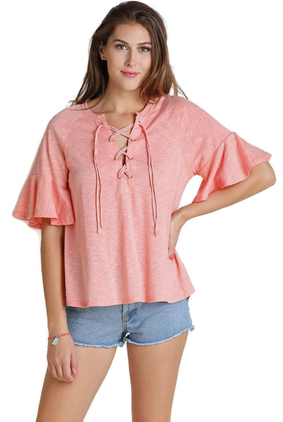 Lace Up Bell Sleeve Top, Blush