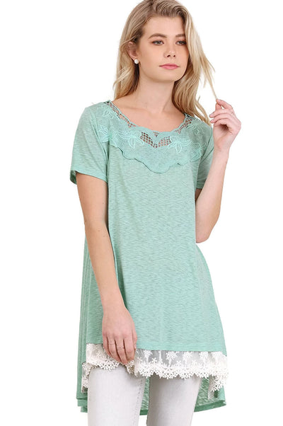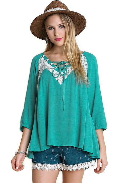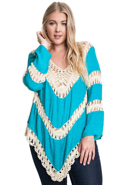 Bohemian Lacy Crochet Trim Tunic, Teal