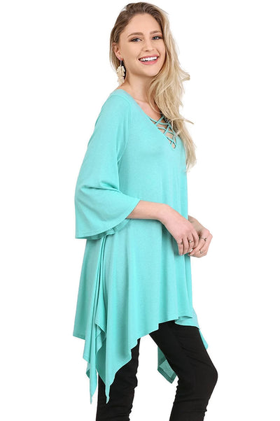 Crossed Bell Sleeve Asymmetrical Tunic, Mint