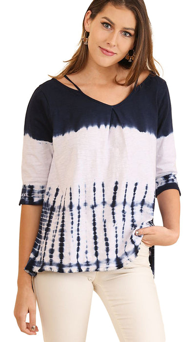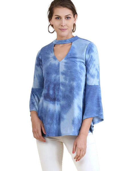 Tie Dye Bell Sleeve Bohemian Top, Blue